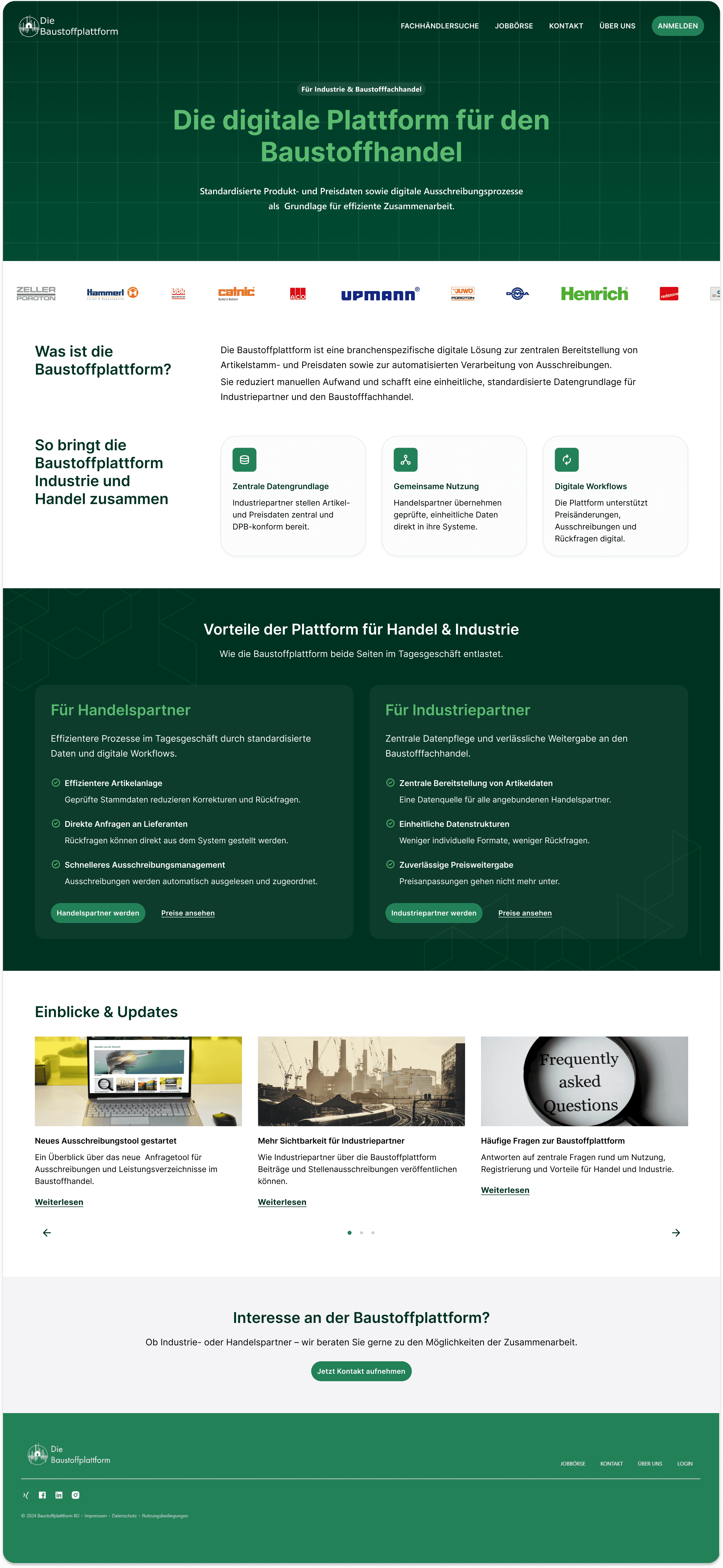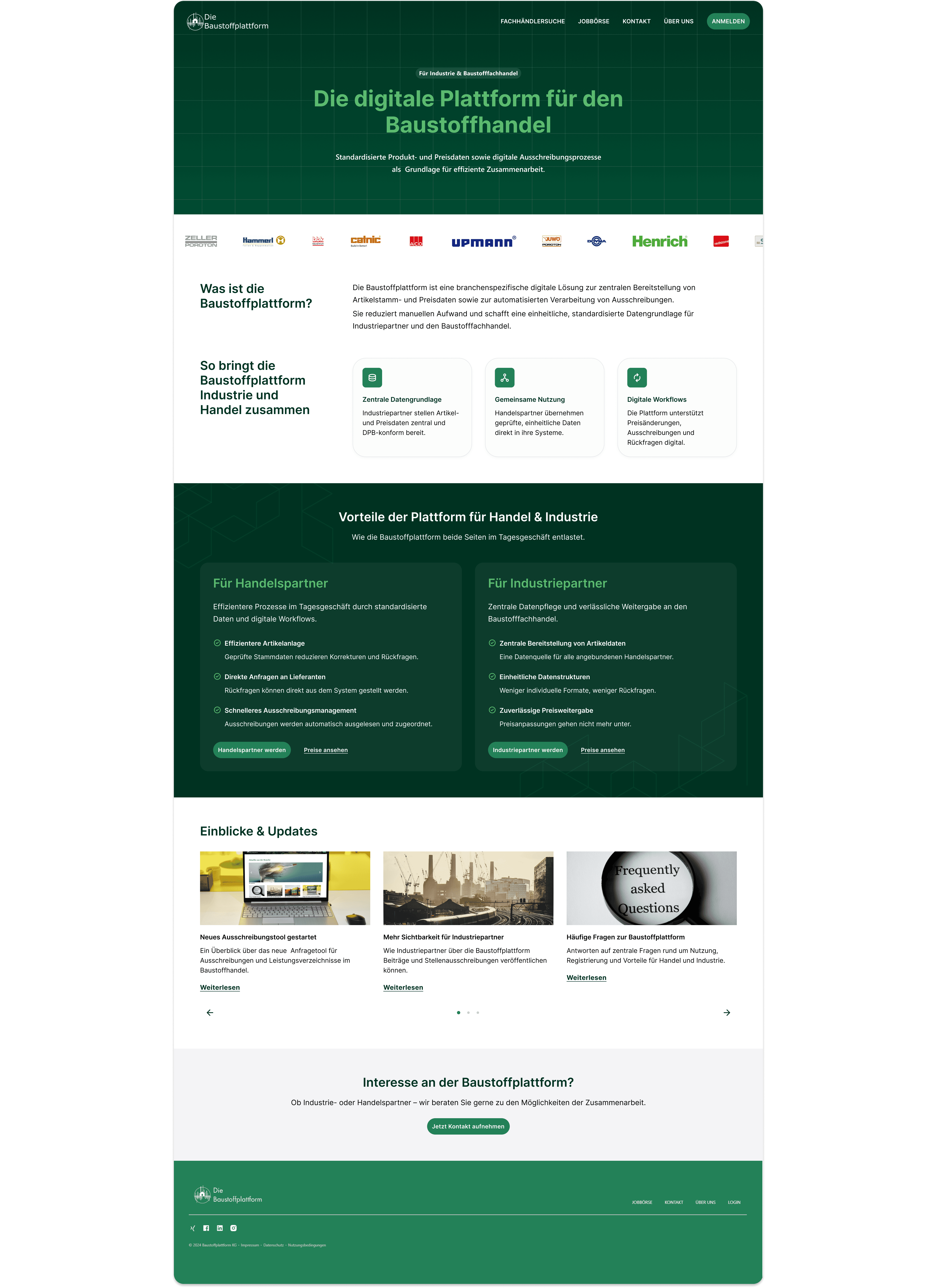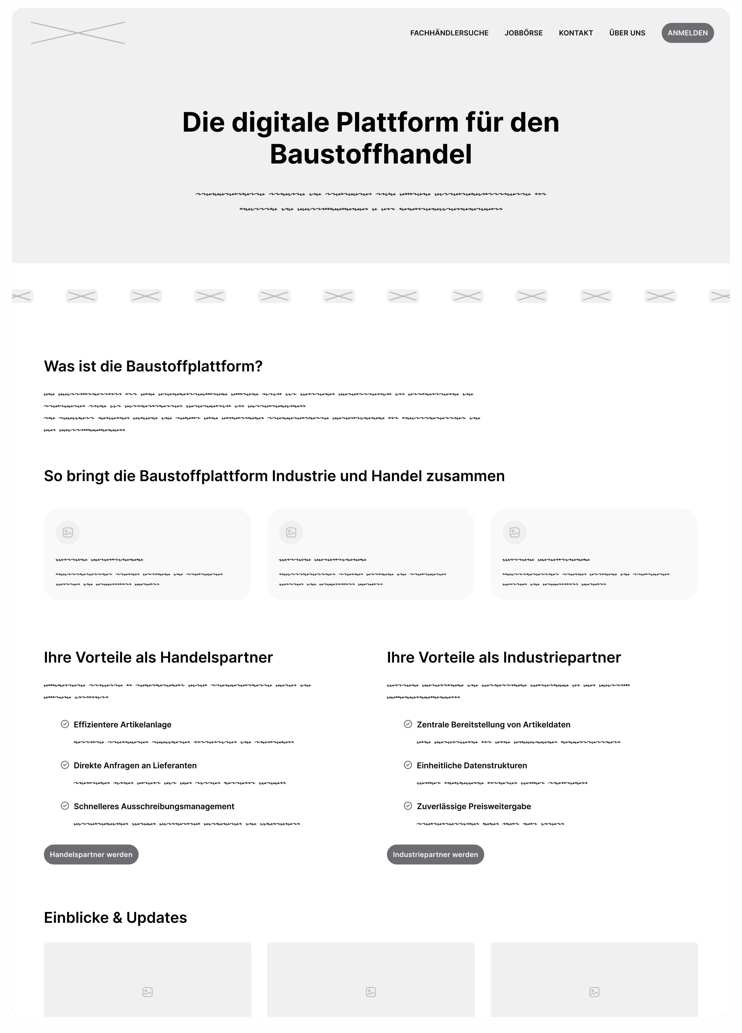 Since the existing site offered little to work with, I started by understanding the construction materials industry quickly: how manufacturers and distributors operate, what pain points the platform addresses, and how to communicate value to both groups without diluting the message.