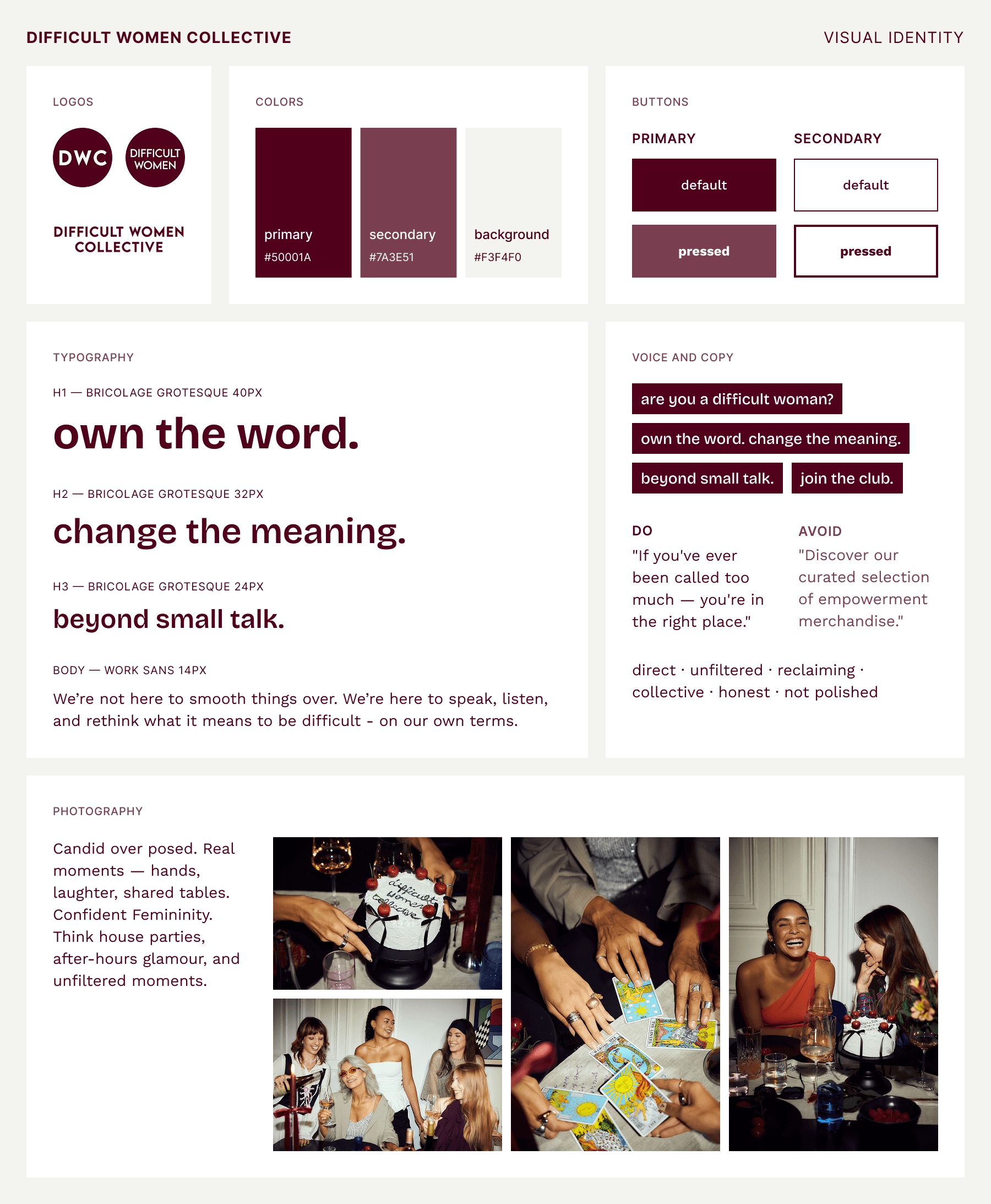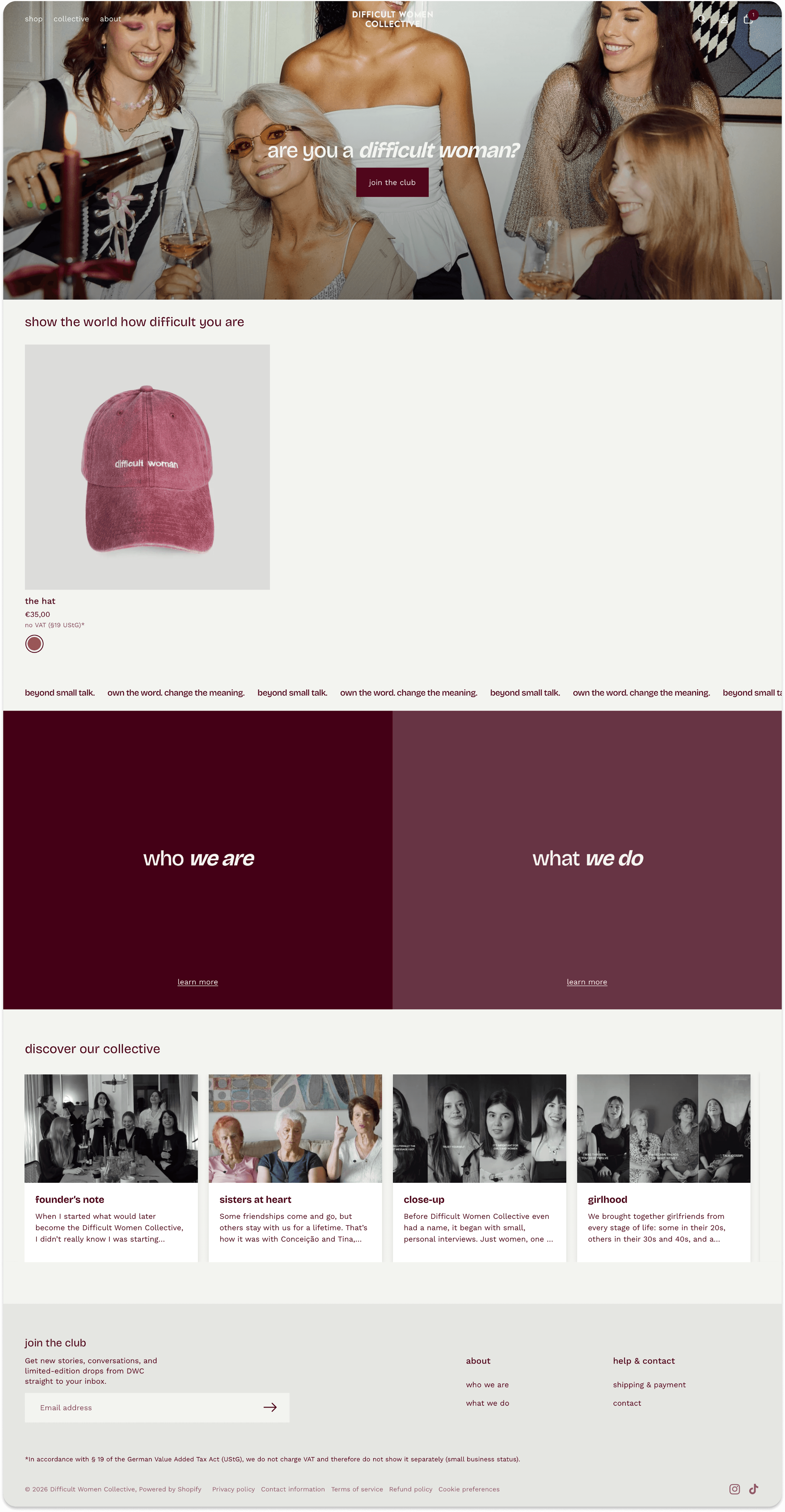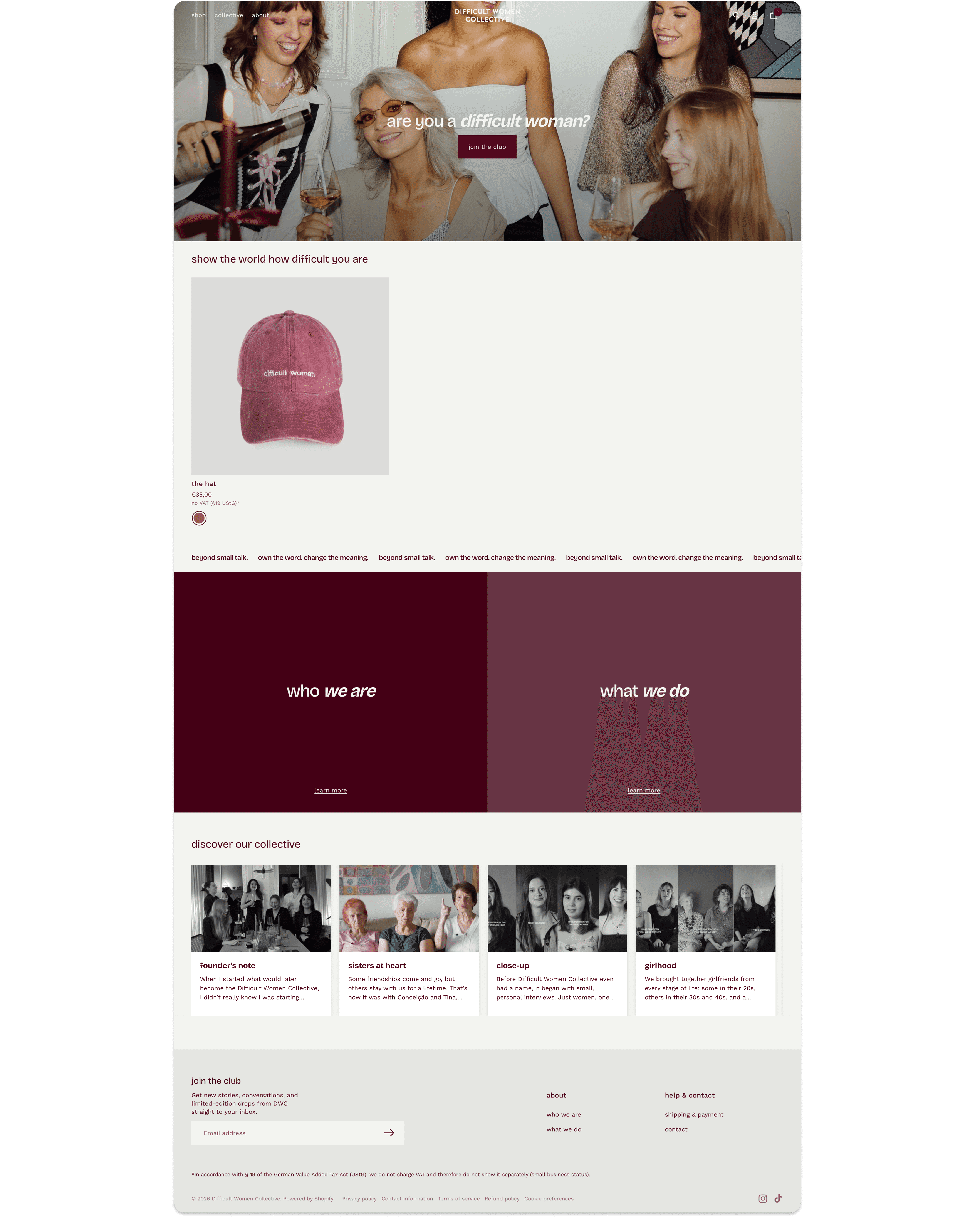 The result is a fully functional web presence that gives Difficult Women Collective a home beyond the feed - a shop, a story, and the space to grow.