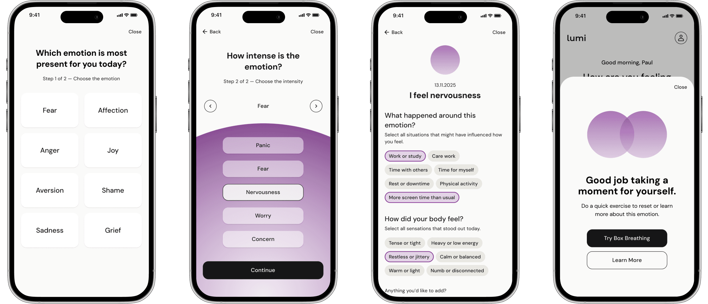 In today’s fast-paced world, many people struggle to identify and manage their emotions leading to stress and overwhelm. Lumi started with a simple question: how do you help people name what they're feeling — and figure out what to do next — without making it feel like work?